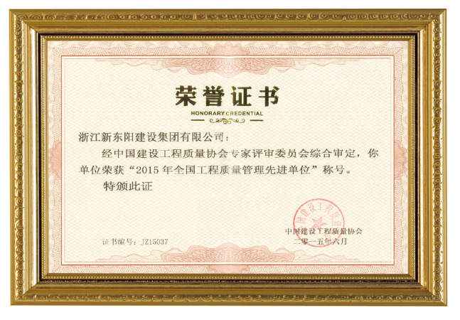 2015年全國工程質量管理先進單位